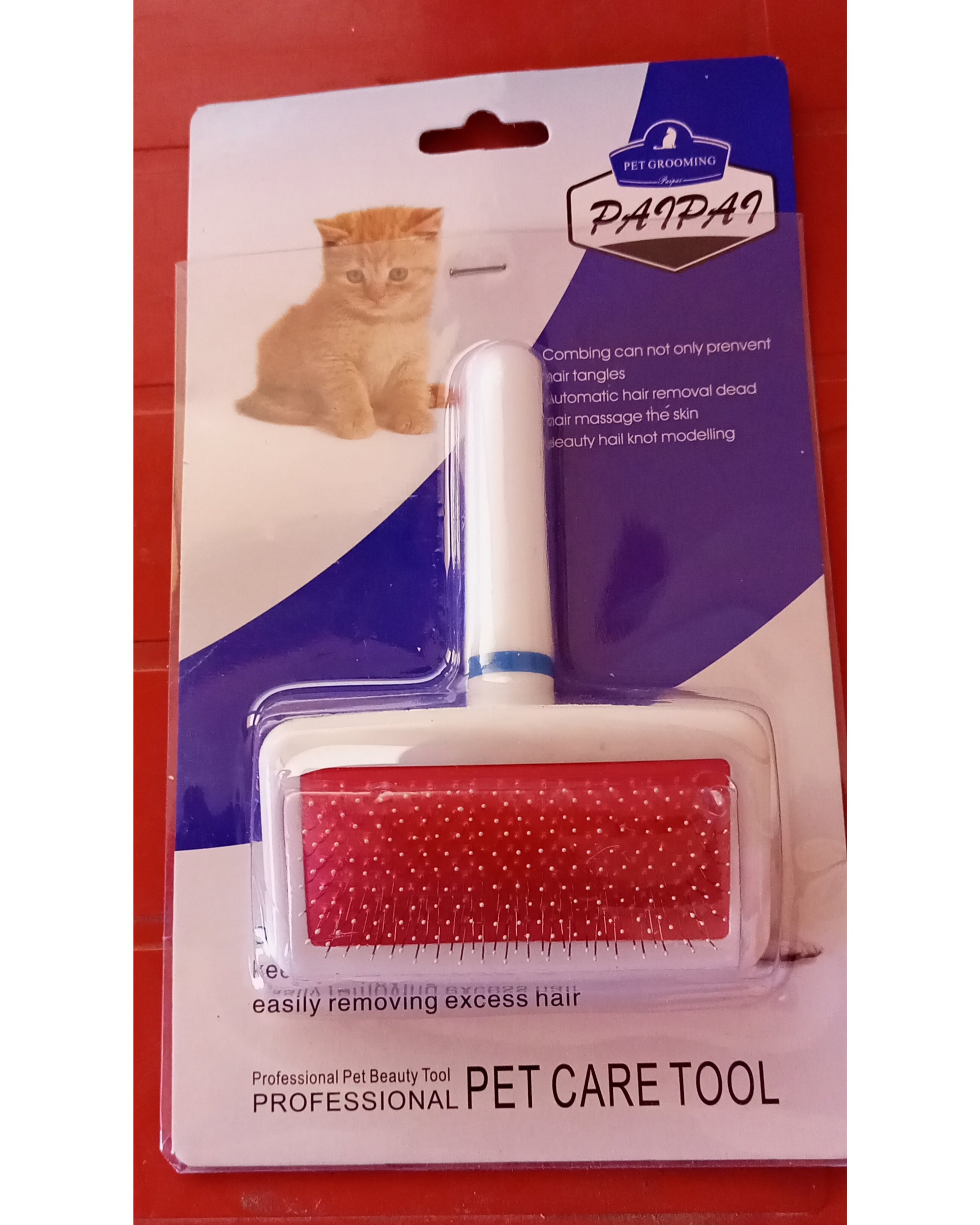 Keep your pets neat and clean with this dual-purpose grooming brush. Designed with soft yet effective bristles, it helps remove loose hair, dirt, and tangles while being gentle on your pet’s skin. The ergonomic red and white handle ensures a comfortable grip, making grooming easy and stress-free for both you and your pet. Suitable for cats, dogs, puppies, and kittens.