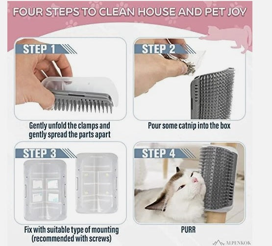 Keep your cat happy and groomed with this Self Groomer Wall Brush. Easily attach it to any wall corner or furniture edge, and let your cat enjoy a gentle massage while removing loose fur. Designed with soft, durable bristles, it helps reduce shedding, promotes circulation, and satisfies your cat’s natural urge to rub and scratch. Perfect for cats and kittens of all sizes – includes a catnip compartment to attract your furry friend!