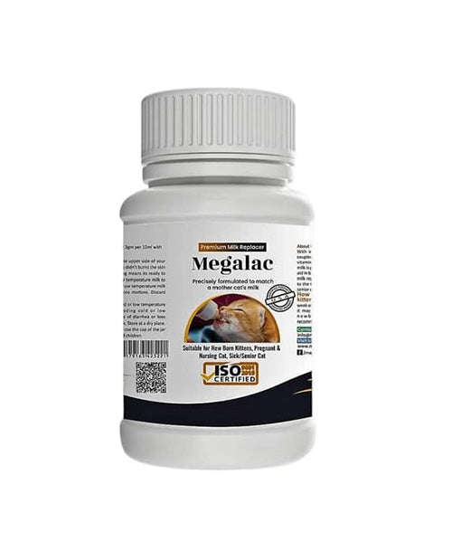 Megalac Kitten Milk Replacer is a premium substitute for mother’s milk, specially formulated for newborn and orphaned kittens. It provides essential proteins, vitamins, minerals, and easily digestible fats to support healthy growth and immunity. Ideal for weaning, underweight kittens, or as a nutritional supplement for nursing mothers.