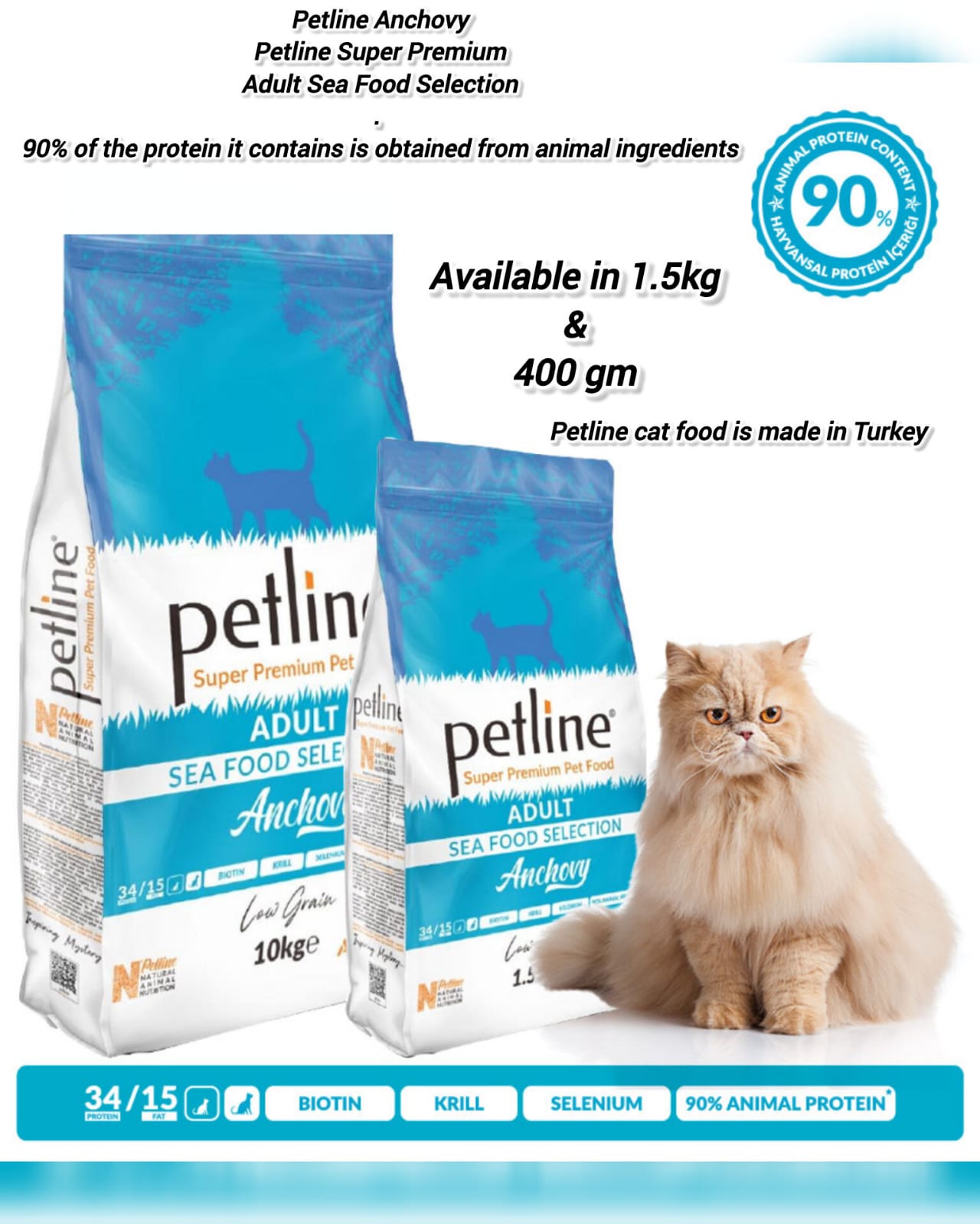Give your cat the taste of the ocean with Petline Seafood Selection. Packed with high-quality seafood protein, essential vitamins, and minerals, it supports healthy growth, shiny coat, and overall wellbeing. Perfect for cats who love delicious seafood flavors.
